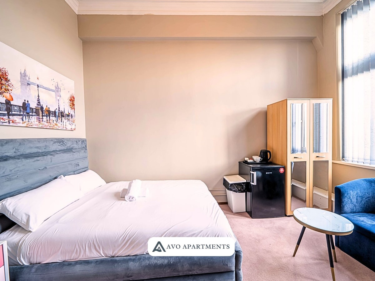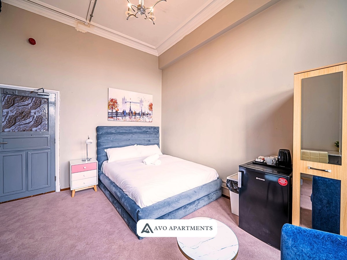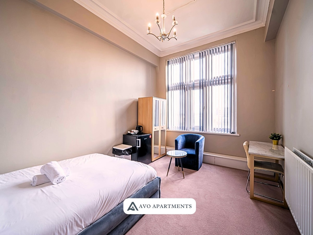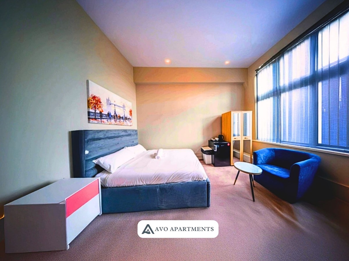 This spacious private room offers a comfortable base in Sheffield, perfect for short stays, business trips, or longer visits. With high ceilings, large windows, and a clean, uncluttered design, the room feels bright and welcoming throughout the day.